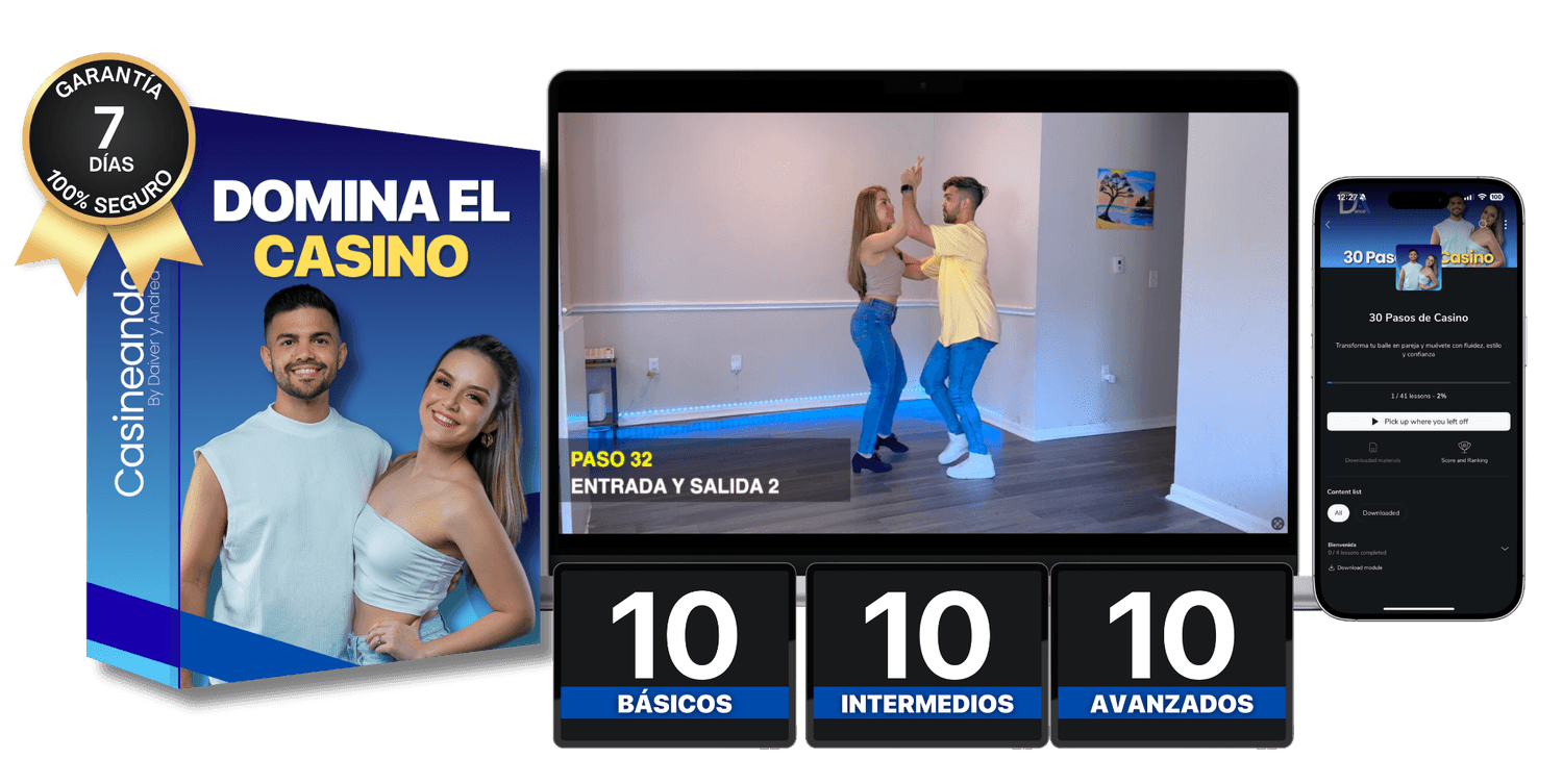 Al finalizar el curso bailarás casino con confianza y tendrás un entendimiento sólido de la música y la conexión en pareja.